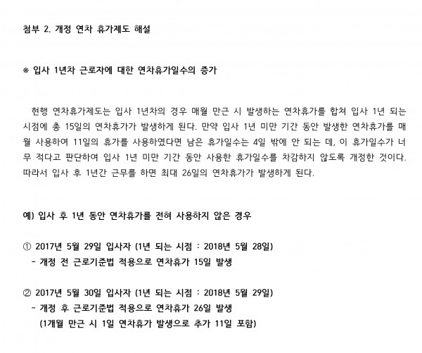 ★ 2018 근로기준법 일부 개정(연차휴가)에 따른 업무 협조